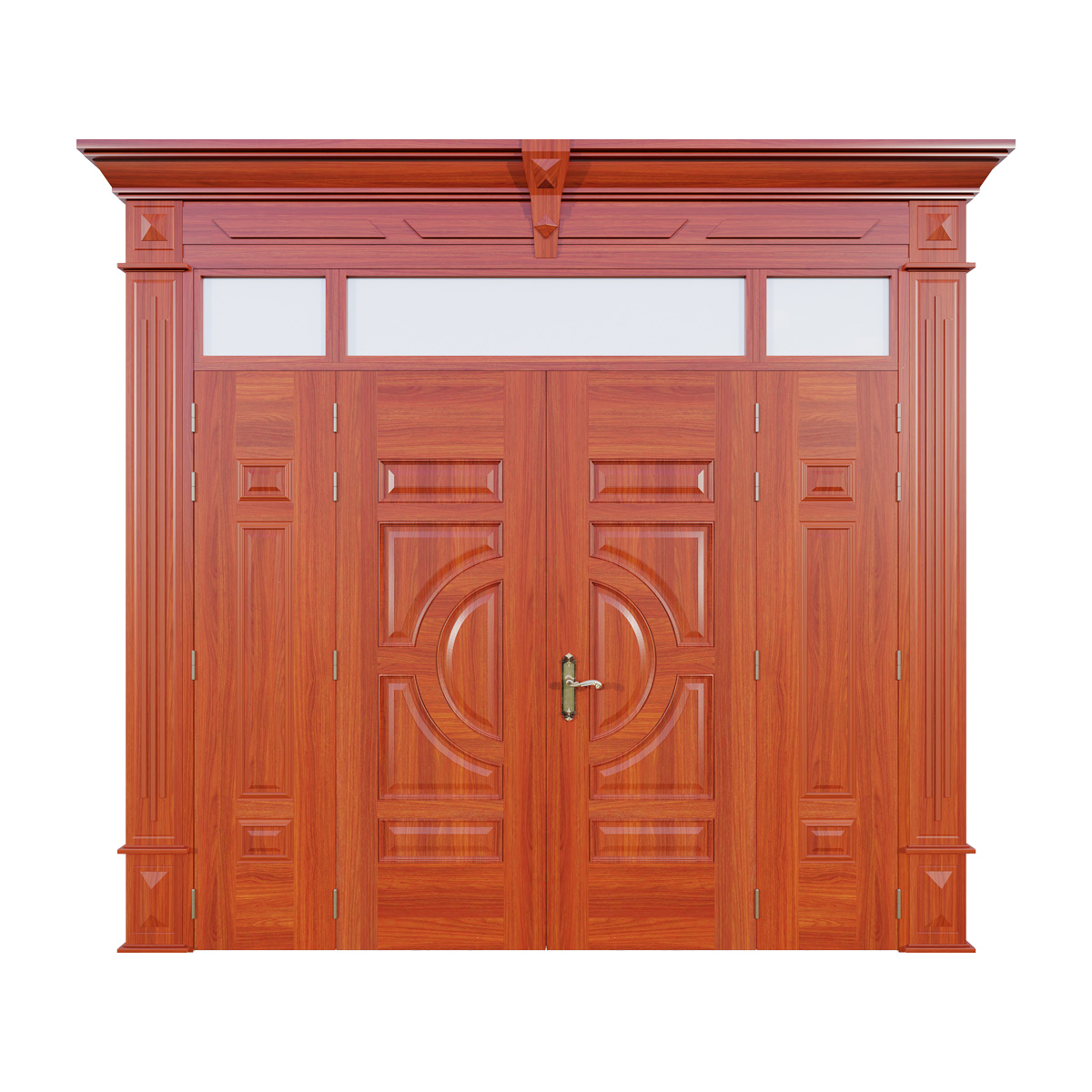 Cửa thép vân gỗ 4 cánh phào đại, ô thoáng kính | Mã A42-K.PĐ.02