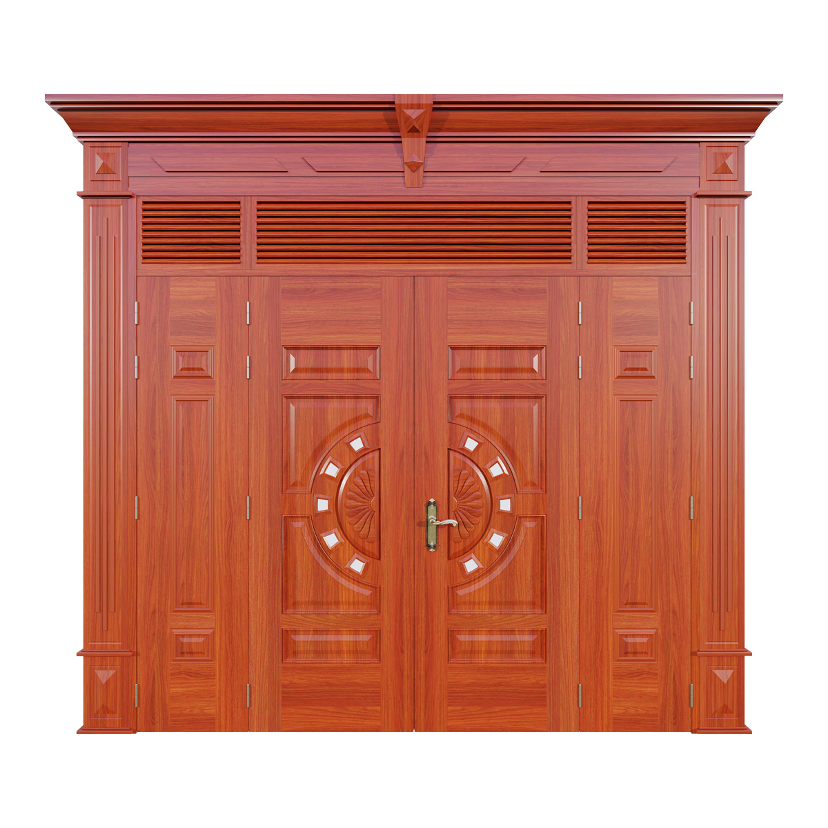 Cửa thép vân gỗ 4 cánh phào đại, ô thoáng nan chớp | Mã A42-NC.PĐ.15